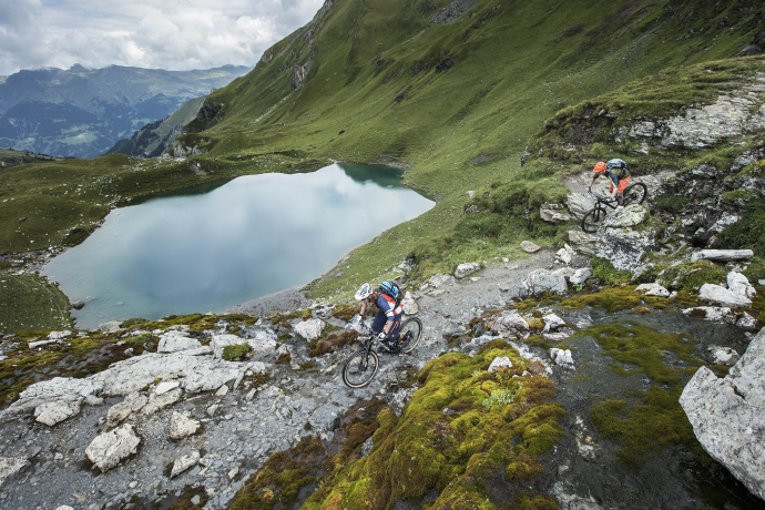 Claudio Caluori, cult biker from Graubünden, loves his sport more than anything else. However, even he gets off the saddle eventually to enjoy the moment after a bike tour. Where is the most rustic alpine hut? Where can you get coffee together with a bike chain replacement? And where does the world elite battle for gold medals and world champion jerseys? Discover Claudio Caluori‘s five insider tips for the Bike Kingdom.